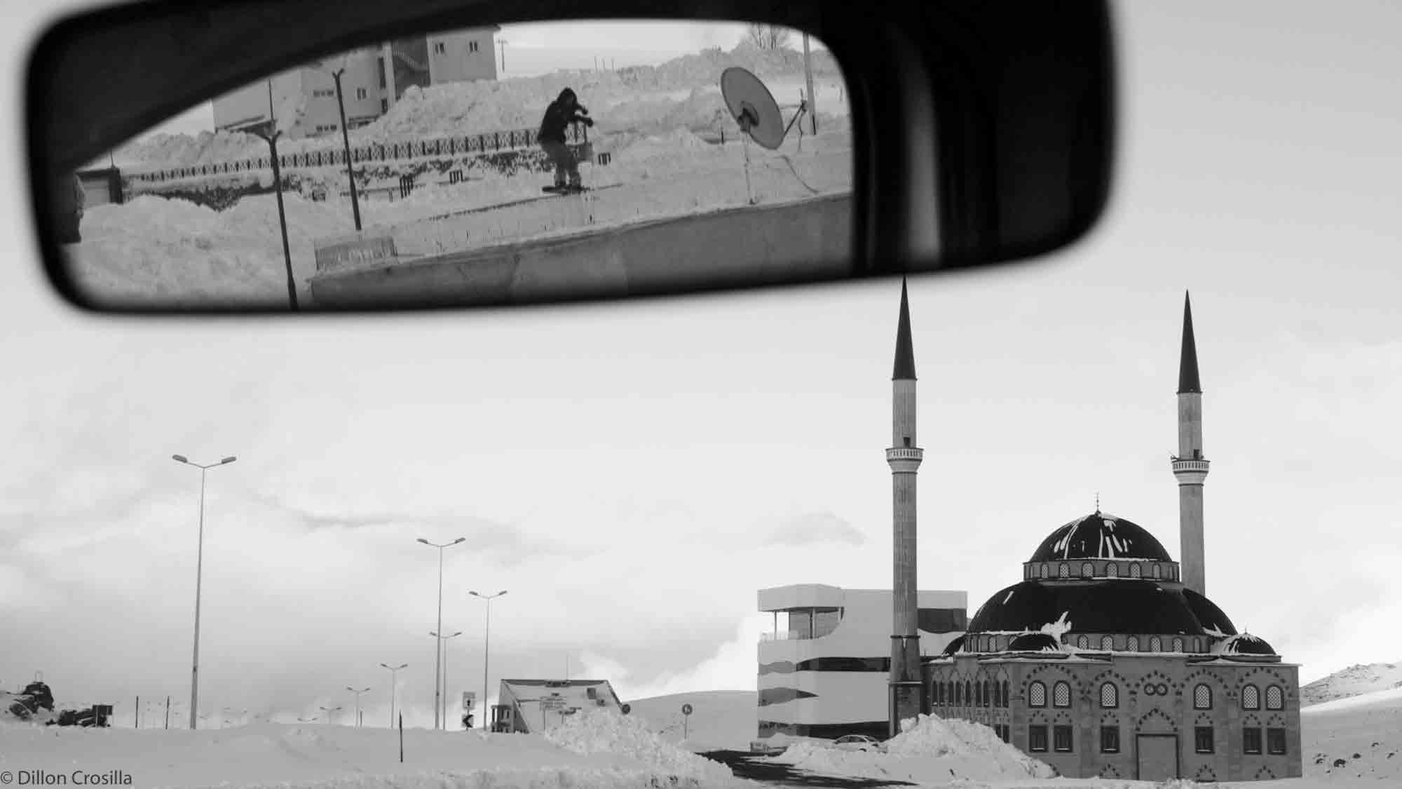 The city is just so intricate in itself. Full of cats and dogs, small roads, steep streets, and so many different levels make it such a wonderful place to discover. I mean we could see it was a little unorganized because of the fact that it just doesn’t snow like that often, so no one had snow tires so the road were a little hectic. But otherwise, the city just get’s so beautiful, all the mosques and minarets are covered in snow and the colors of the city really stand out, with these amazing cyan blues and oranges. The best part was just cruising on our board on the sidewalks and see peoples faces be so astonished or just excited by the randomness of it all.
