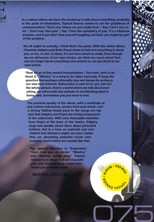 But what about defining being a drifter as someone who’s simply not too interested in any kind of affiliation to genres, specific scenes or a societal value system that feels outdated? As someone driven by the necessity to change and constantly move - physically and mentally?