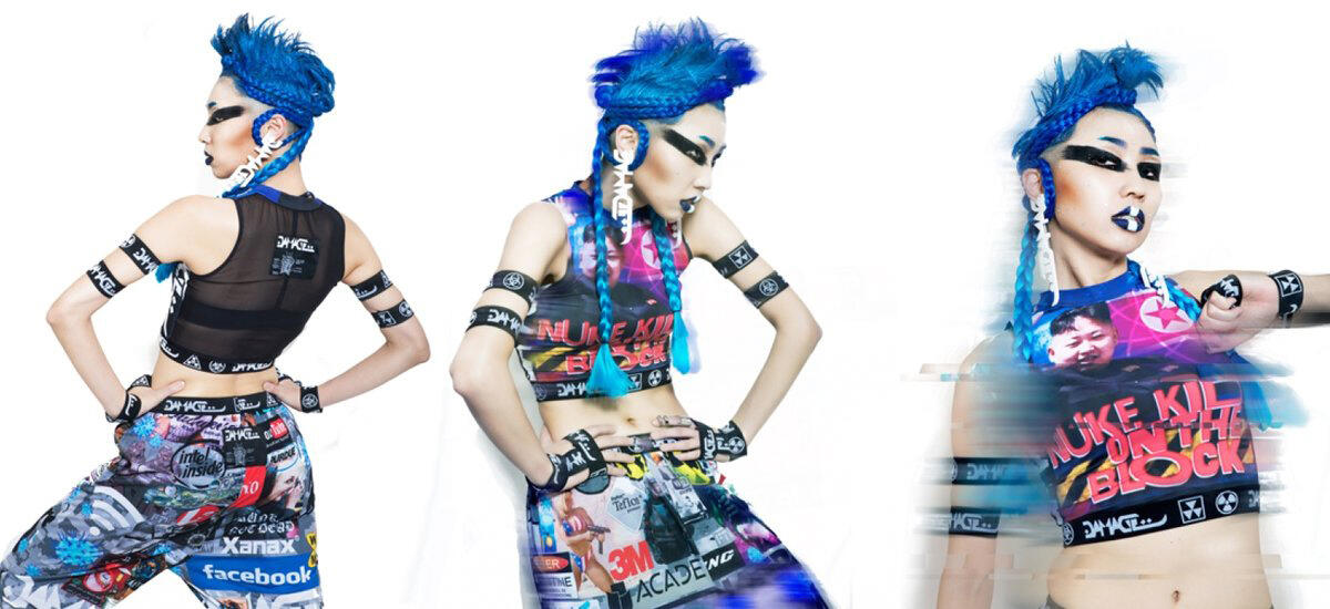 Some of your items are very explicit! Where is your inspiration, or your references, coming from? When we first started Damage Group, my wife and I just wanted to collaborate on a fun fashion project together based off our own personal inspirations, which ranged from internet culture and cyberpunk chic combined with some references to socio-political and world conflict views along with an added dose of tongue & cheek humor thrown in. We were basically just having fun with it putting all this content together in a really explicit and ridiculous fashion. It essentially seemed to strike a major note with people, and from there we developed into a more established clothing brand thing later on. Our fans seemed to like the eccentricity of the line and the limited items approach, so it helped us keep going and just make more really.