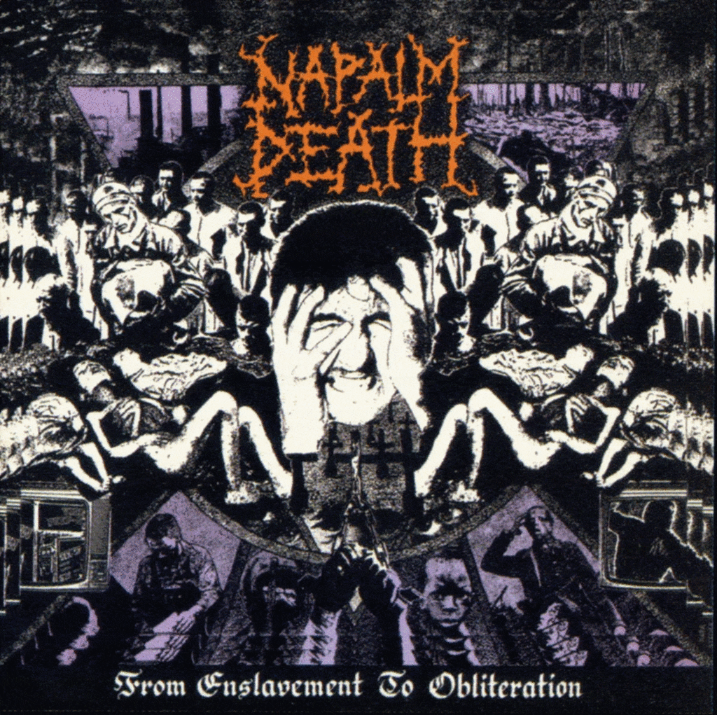 Napalm Death “From Enslavement To Obliteration” has a really close place to my heart when it comes to albums and art work. It was the 1st “death metal” album I bought... instead of thrash. The art work, by Mark Sikora, who also did the cover for the 1st “Death” EP, is fucking mental. The layout is so good with all the dead bodies form concentration camps, workers, miltary and the guy holding his head in the centre. It’s so 80’s but so before anyone else got that good at gnarly artwork... and the three colour print makes it amazing. I recently got the t-shirt for Christmas after wanting it since 1990 when I first heard the record. I bought it on tape, but got it again on picture disk just for the art work.
