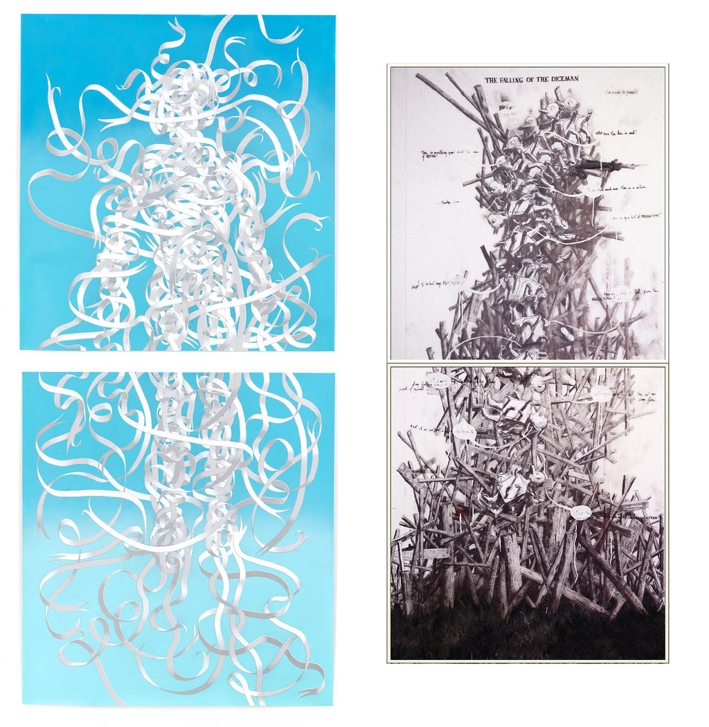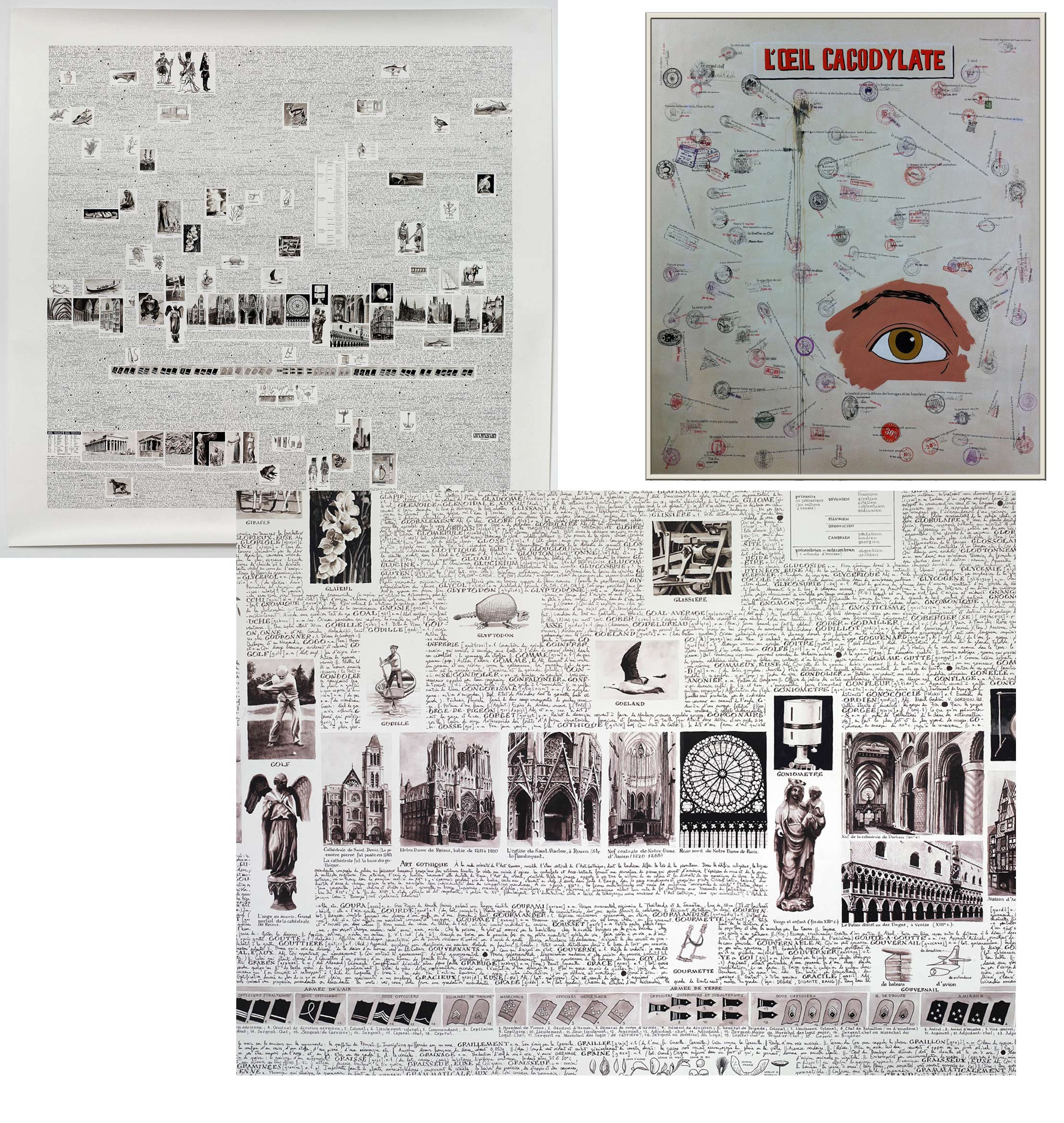 So please tell us about your upcoming projects? ||| I am working on a six episode strong graphic novel where the hero is the dice man. I am currently finishing an artwork close to still life, which belongs to the series “Habiter la Viande” (Live in the Meat) - basically three large pieces of meat hanging which will work as the matrix of a small village, like you can see on the Amalfi Coast, with stairs and small bridges. I also have a dictionary page in the works, a POSCA painting which shows “La Femme Presque Invisible” (The Almost Invisible Woman), a sand sketchbook, a series - “a very old thing” - which presents Ben Grimm at the hospice, new pawns, a new series of photographs titled “Planqué à L’atelier” (Stashed in the Workshop). I'm preparing a big scenography with an engineer, the black box, which allows me to show 96 black designs on chair rails moving. I'm also working with Gaël Charbau on what he calls an introspective. An exhibition where we will organize and show 25 years of work from pieces that have never been shown in public. Plus two or three other things... sorry, I do not make this list to show off and play the big guy! But as far as I can remember, I have always worked on multiple projects, and I like it when they all add up to a kind of weaving. At this very moment, I have the feeling of living life to the fullest. Thank you for your attention!