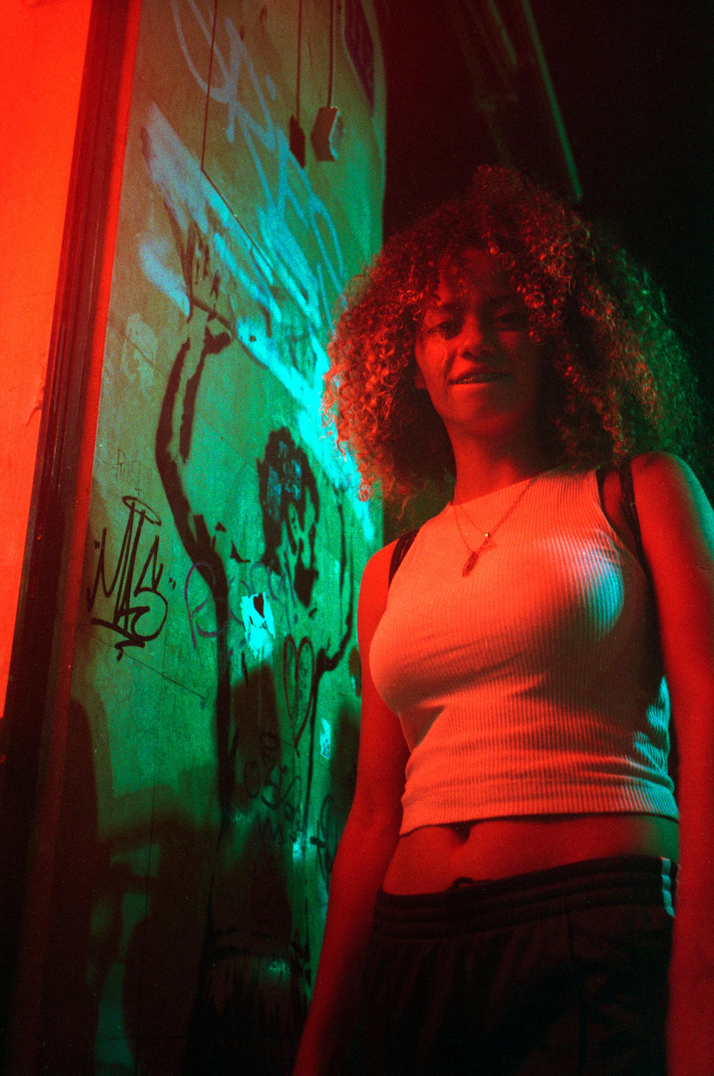 I wanted to shoot a portrait of Sophia and used the sky as a backdrop. When I pressed the shutter release, a perfectly oriented flock of pigeons flew through and made the shot – my jackpot by pure coincidence!