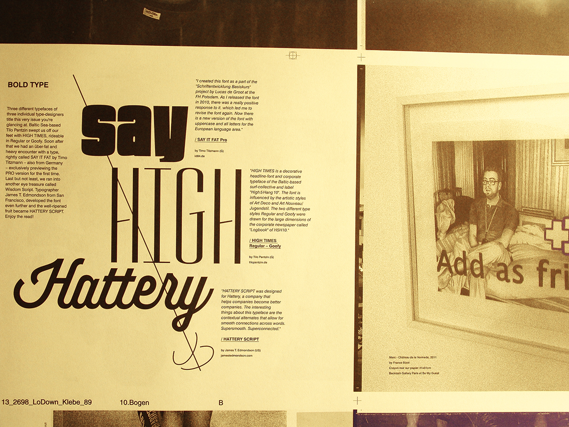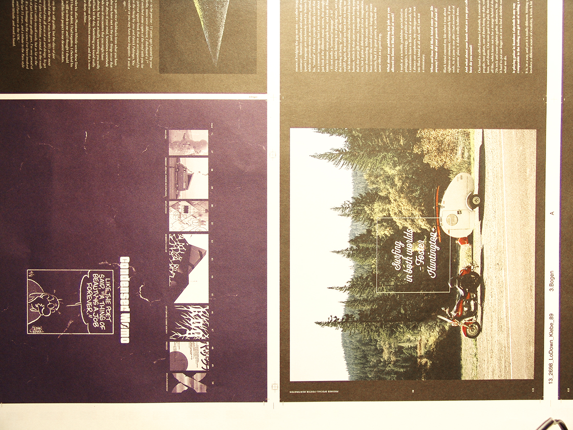 To keep it terrestrial, you should keep this issue of Lodown in a box, and when the lights go out and the data-world is shaken by an electromagnetic storm – which can happen anytime –, these printed images are not only safe and sound, but real. Keep that in your head for now.