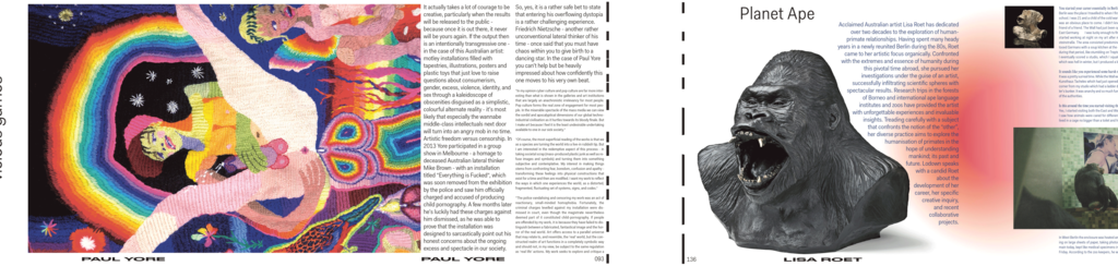 Speaking of which: there sure wasn’t one in Lodown’s early days. Design always had the upper hand because back then it felt foolish to not punk the shit out of the possibilities early DTP was offering. It was completely freestyle because we were actually doing things that made us feel free, things where you don’t compromise for an instant. We’ve found something we’re better at than the majority of people - well, we actually still are - and just did it. A couple of years later the layout of this publication still is an exciting one, and we even make sure you’re able to read the actual articles by now. As Helfand stated “ultimately, reading is more important than design” - well, depending on the size of your screen, that is. Originality seems to be another obsolete word, or at least its meaning got transformed by the uniformed and corrupted culture we’re living in, as it is more substantial to want to get a piece of exactly that cake the other guy is eating than coming up with your own recipe. Point is: we do what we love. Still. Let us know about the last time you’re able to say that with a clear conscious, and then we talk.