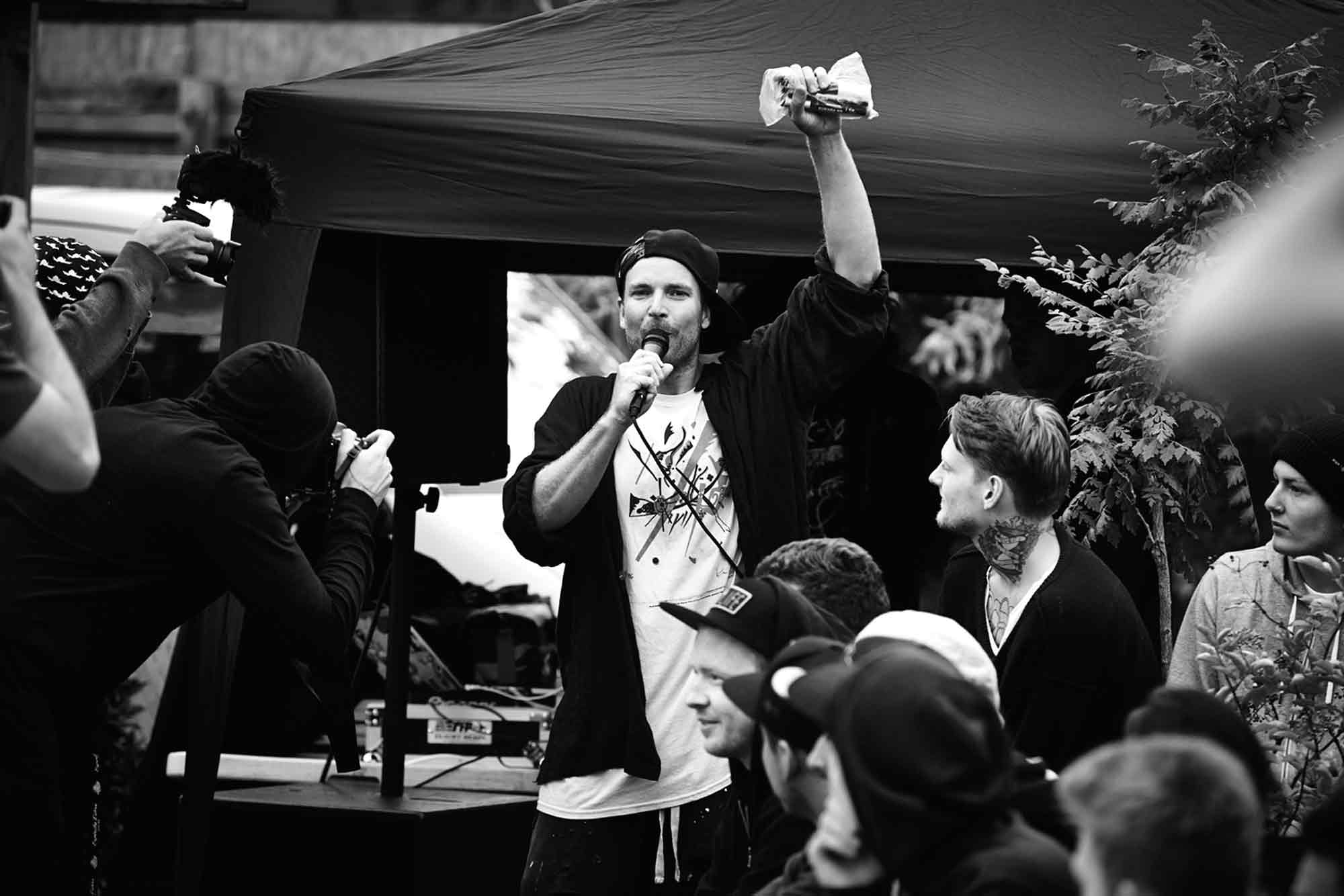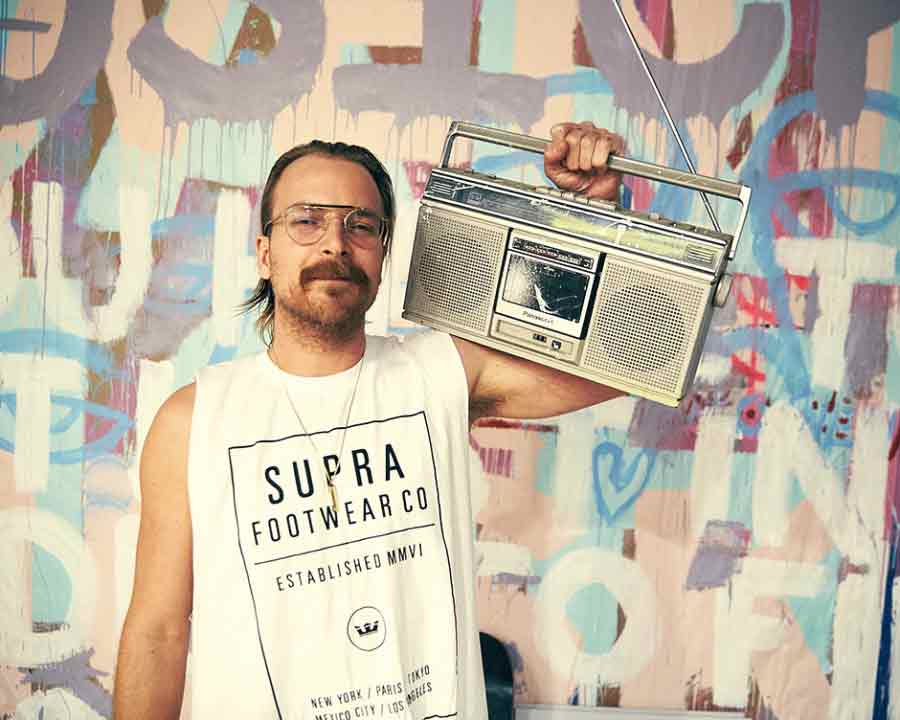 Chad Muska brings the hype, his boombox, charged skate buddies and gets the party jumping. There is so much contagious passion, fun, love and energy in his life to inspire generations to come. Due to some serious back problems, he had to slow down a bit, but channels his creativity with a multidisciplinary vision.