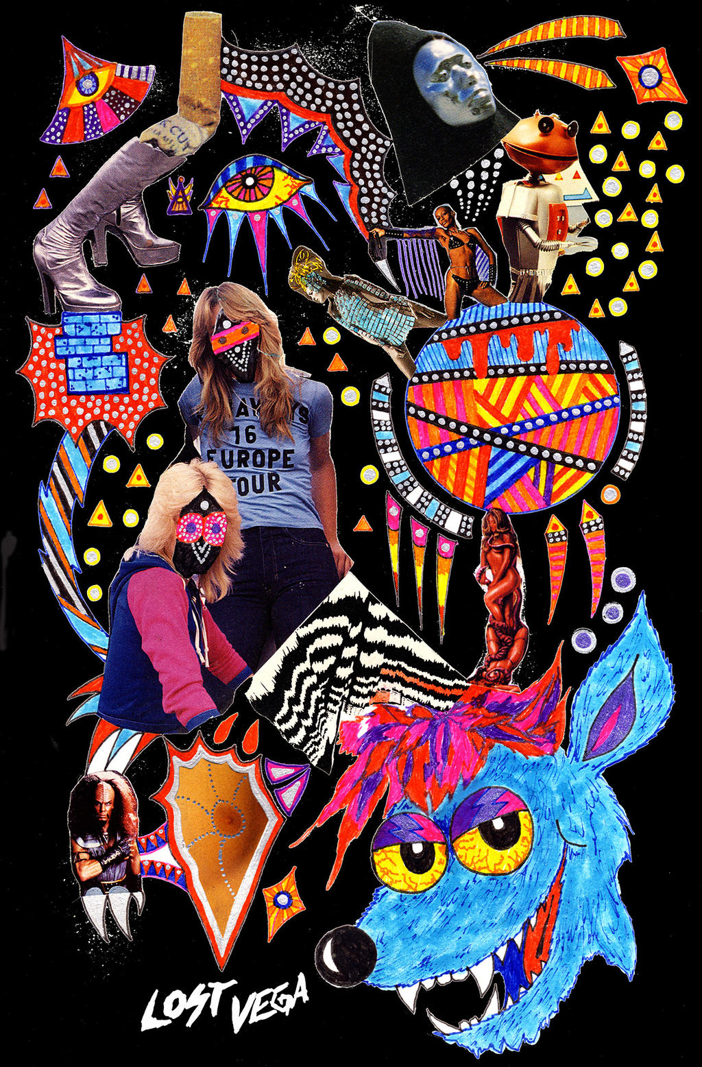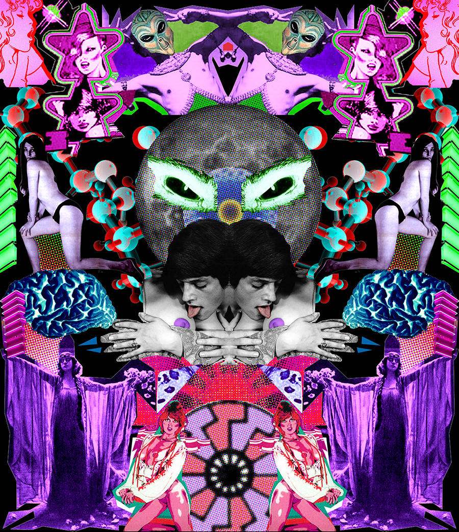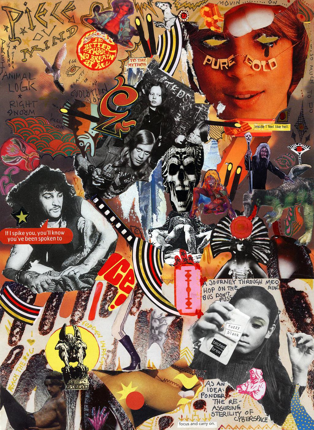 What came first, your love for collages or illustration? And what do you find the most fascinating aspect of collages? ▶▶▶ My love for drawing came first, but my association with collage is a kind of early one, too. I remember seeing some ‘Temple of Psychic Youth’ artworks in Tempo magazine which consisted of paper clippings, blood, hair and sperm amongst other things. I didn´t copy that, but I loved the idea behind it. Collage is fascinating to me because it is basically what William Burroughs meant with the Cut-Up method. You cut images out of print media and re-create and turn it into a personal object which gives the original pictures another twist and meaning. There is also something subversive and sinister about destroying a finished product and giving it your own voodoo. I hardly ever use the computer to making collages, I prefer sticky fingers from glue and messing around in a sketchbook!