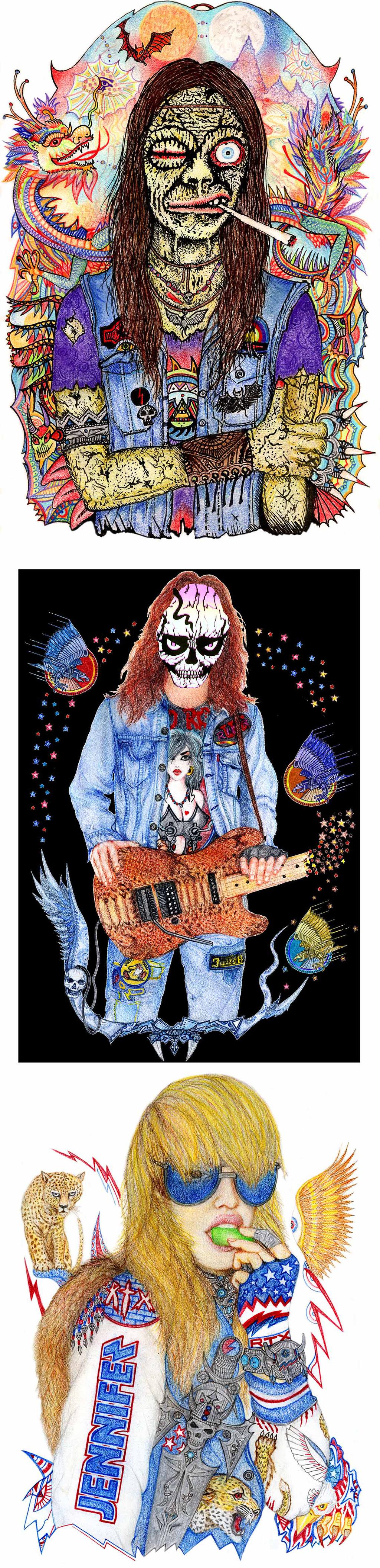 How did you hook up with RTX? ▶▶▶ I have been a huge fan of RTX and Royal Trux for years and I found out they had a MySpace site. So I opened an account to see their pics because you had to log in to view them. To my great surprise a little later on, Jennifer Herrema mailed me and asked me to do some artwork for "Western Xterminator” later re-titled "RaTX”. I am totally happy to have provided drawings for RTX, because I love their music and attitude, they are my heroes and the works I constructed for JJ & Co really have a special meaning to me. Later on, photographer Sasha Eisenman asked me to do a sketch of Jennifer for his "Friendshirts” label, which also inspired me and the result of the collaboration, is also one of my favourite images done by myself. Also check out "JJ got live RatX”, the badass newie from RTX, it rocks like hell and features another beloved contribution.