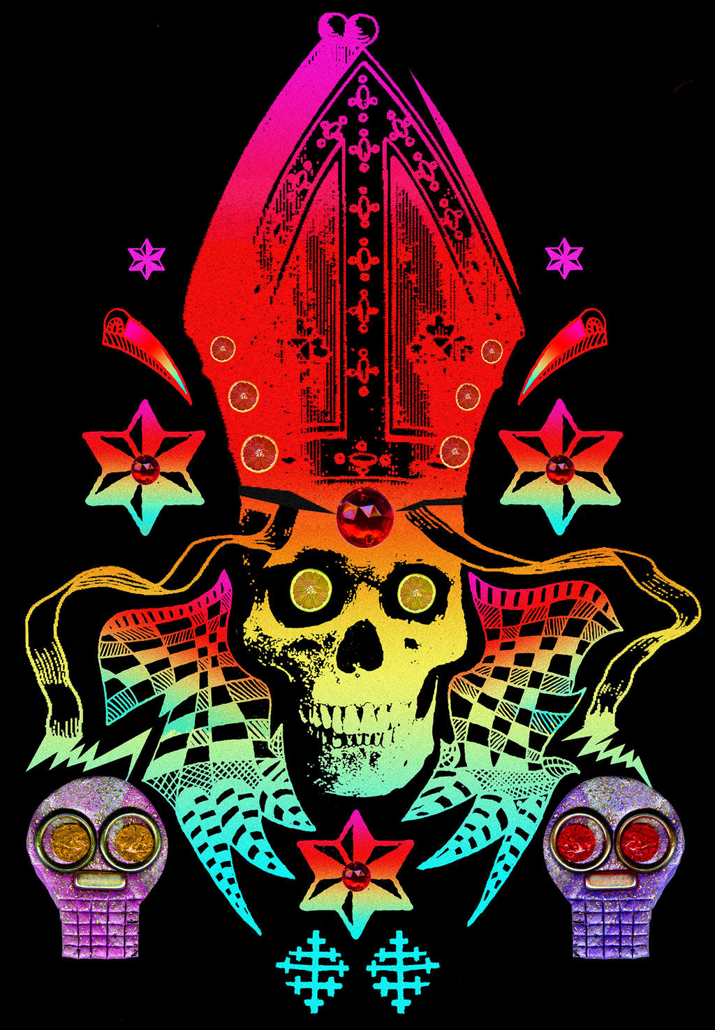 The Skullux buzz is finally getting louder. Notorious for playful and vibrant psychedelic pop works, that would easily feel at home in the company of artists like Fergadelic and Pam’s Misha who equally injected personal faves und fun into their art and graphics (and into fashion), Berlin son Andreas Jenne just raised his own bar with another fantastic example of artwork for the latest RTX album which was released on Drag City this autumn. Hardly a fan of the glitz and the glamour, talented Mr. Jenne is a shining example of honest DIY culture that couldn’t care less about the latest trends or pop art as a money making machine. Raised on b-movies, rock and an interest in the weirder things in life, Skullux’ slightly darkened mood lunged him forward in artistic maturity and craftsmanship, an amalgamation of chaos and control that will find its way (straight) outta Neukölln and into the international exhibition circus sometime soon.