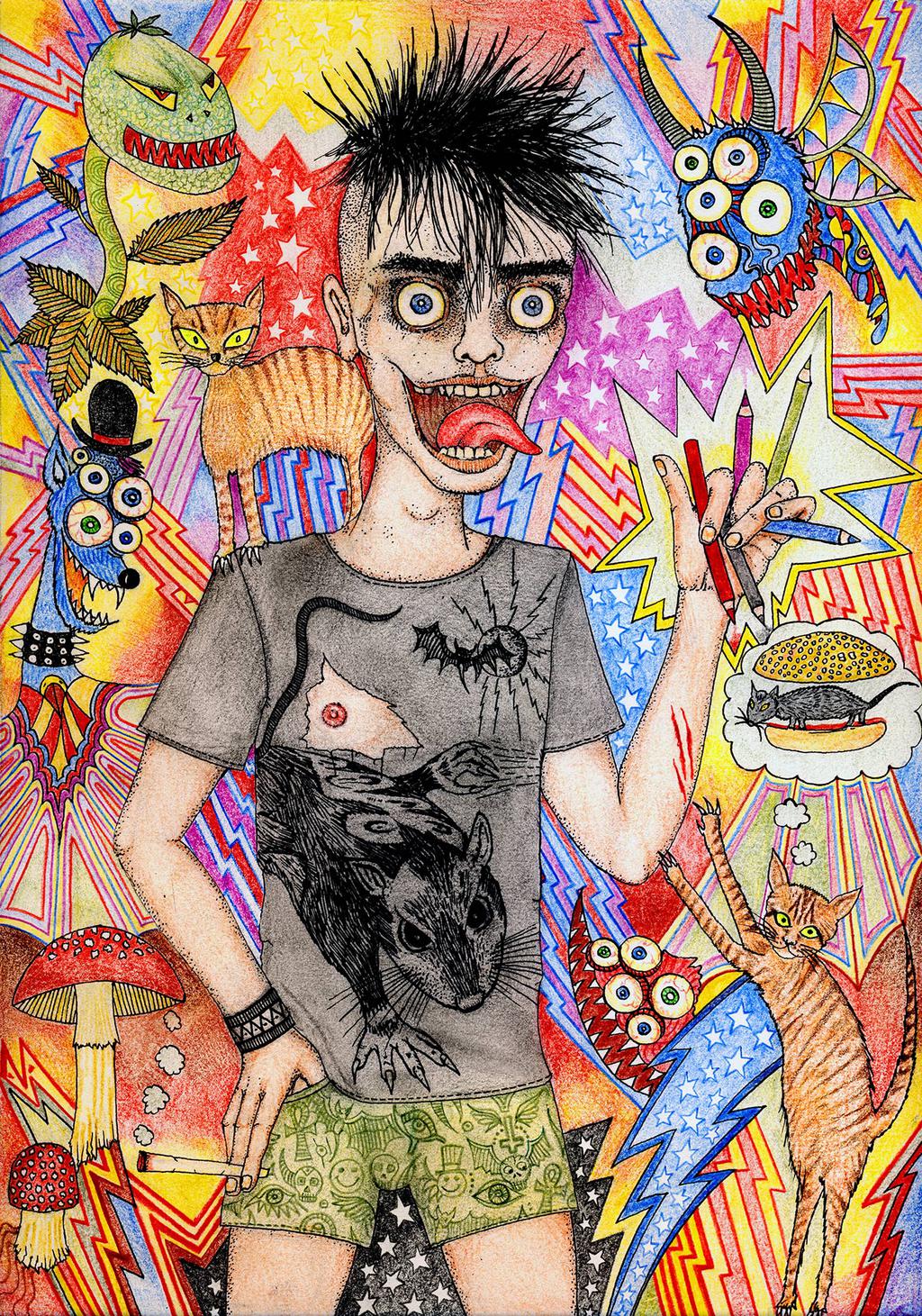 Your art is clearly influenced by Midnight Movies, (early) Heavy Metal and the NY school of pop art... why do you have such a soft spot for what the very majority of people simply call trash? ▶▶▶ I love the artwork of carnivals, the paintings on ghost trains or merry-go-rounds. I never look at that style as being inferior to what is so-called "high art”. There has to be passion involved. All art that is good has to be intense! Trash movies or the like, they are dear to me because they come from the heart, they are spontaneous, and done with just a tiny budget. They are full of life. Also there is that strife for perfection and attention to detail that I admire. I definitely have a soft spot for Joe Coleman as well, he is a genius!