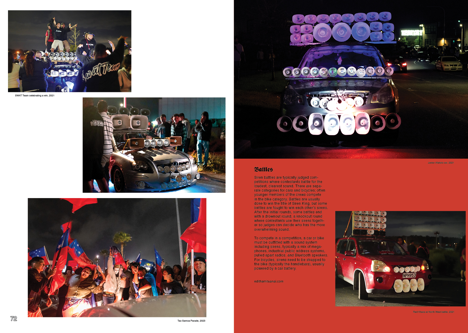 SIREN KINGS … Siren Kings are members of a primarily Pasifika underground youth subculture, originating in Auckland, New Zealand, which gained popularity in the mid 2010s. The siren scene involves competitions where crews compete for the loudest and clearest sound produced by sirens, loudspeakers, or public address systems attached to cars or bicycles, to win the title of Siren King.