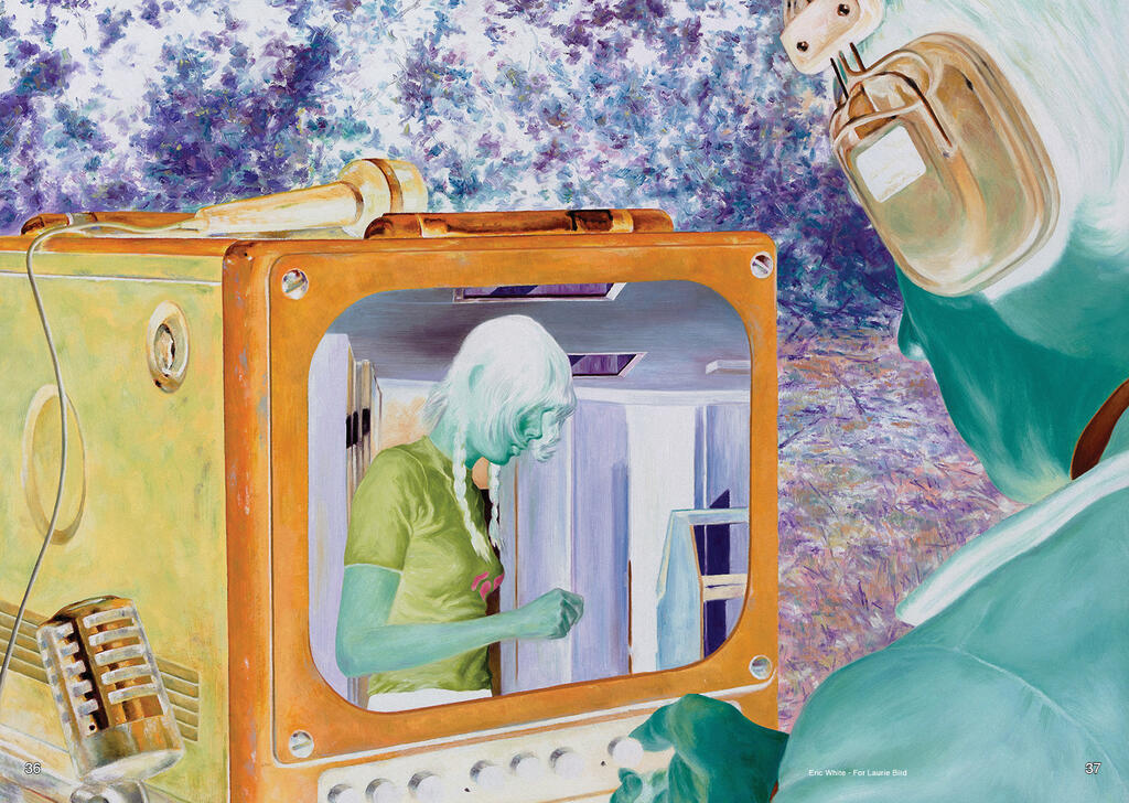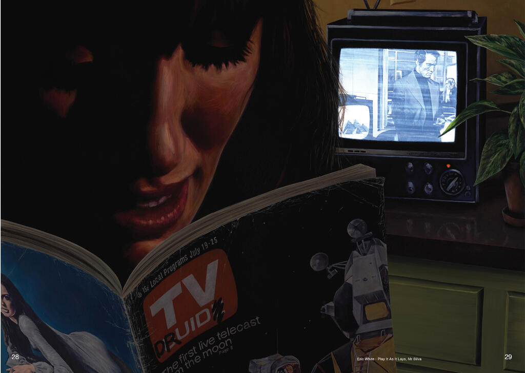 ERIC WHITE… Splitting the majority of his time between Los Angeles and New York, White blends New Hollywood myth-making with pop culture references and more than just a nod to the hyperrealist movement to create his very own narrative on modern Americana. The resulting paintings more than often tap into uncanny territories, as you feel that they’re just delivering snapshots of a higher plot driven by disorder, surveillance, and paranoia.
