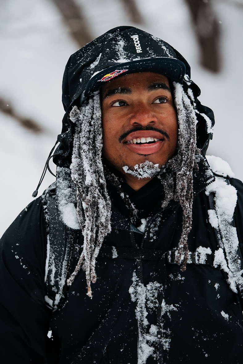 “Like I said, I never really was stressing about getting on the mountain. That’s just the way I grew up, and I was never really scared to do anything. But a lot of people grow up differently. And coming from all-black communities, it doesn't feel like, you know, no onewould come to an all-white community, or a mostly white community, which is the ski resort. You know, it's hard. It's hard when you're learning. You have to get there, you have to find parking, you have to find where the rentals are, you have to get the gear, you have to get a board that works, you know, and everything in between that…”