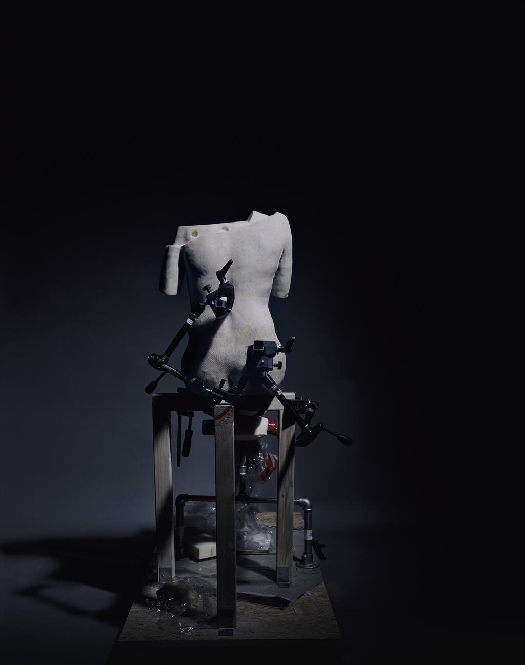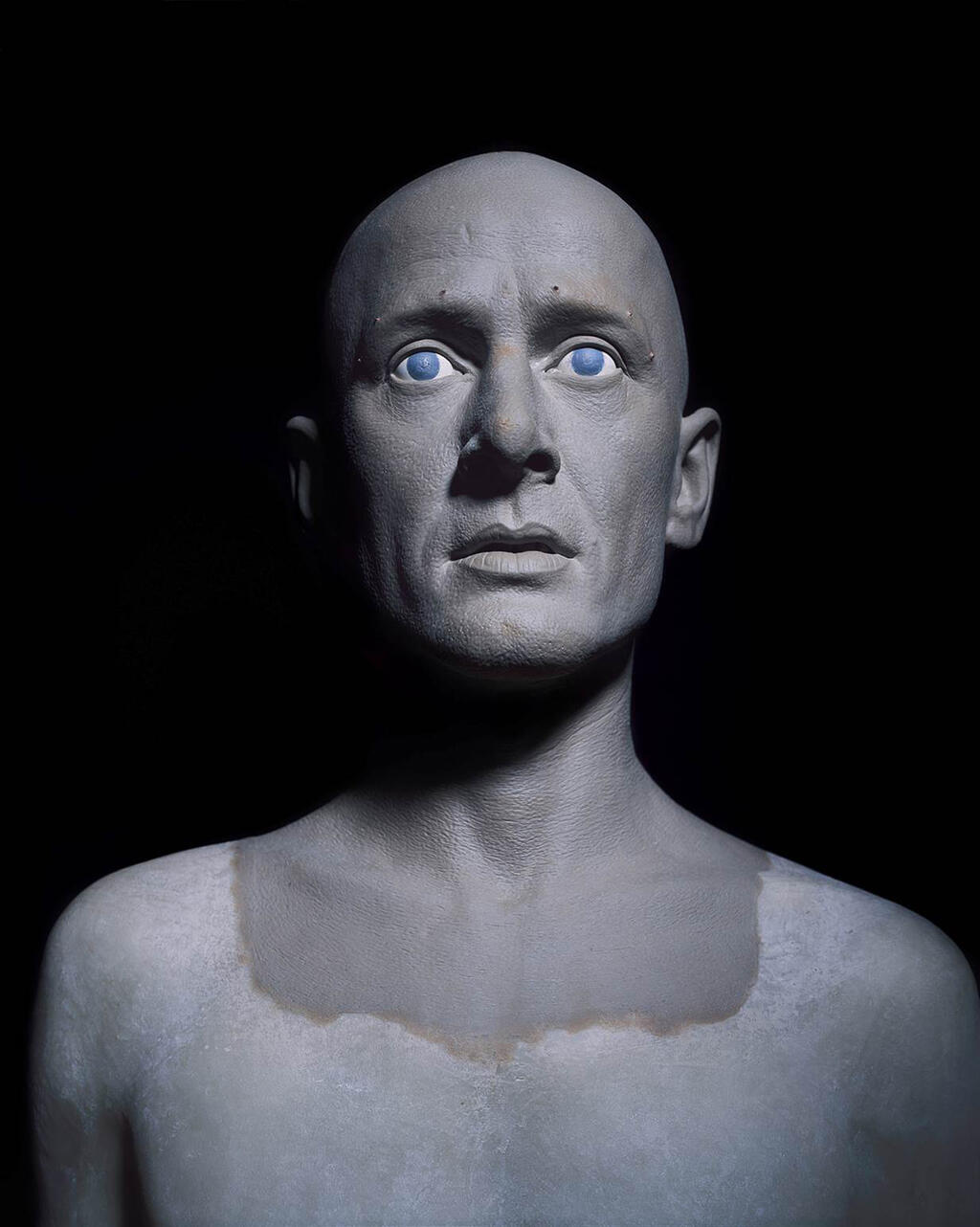 Mühe has attempted a challenging personal interaction with his gifted family on his father’s and on his mother’s side, with famous German names such as Ulrich Mühe, Annegret Hahn, Jenny Gröllmann, Anna Maria Mühe and Konrad Mühe. In photography-based compositions that juxtapose living family members with the sculptural replicas of those that have died, Mühe examines and questions photography’s ambivalent significance hovering between truth and construct.