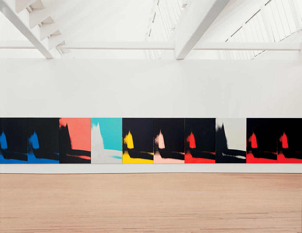 The monumental artwork 'Shadows' (1977-78) consists of 102 large format, silkscreened panels that reflect some of Warhol's explorations with abstraction, through his signature palette of bright and cheerful hues which characterized a large part of his work.
