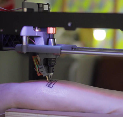 The young French designers from Appropriate Audiences hacked a 3D printer to make an automated tattoo machine. The popularity of tattoosis at an all time high, so in order to give new tools and opportunities to the actual artists linked with new technologies, the crew adapted software produced by Autodesk to turn tattoo designs into digital files that can be downloaded to the machine. The machine is a mix of a Makerbot 3d printer and a tattooist’s needle, which is puncturing the skin up to 150 times per second.