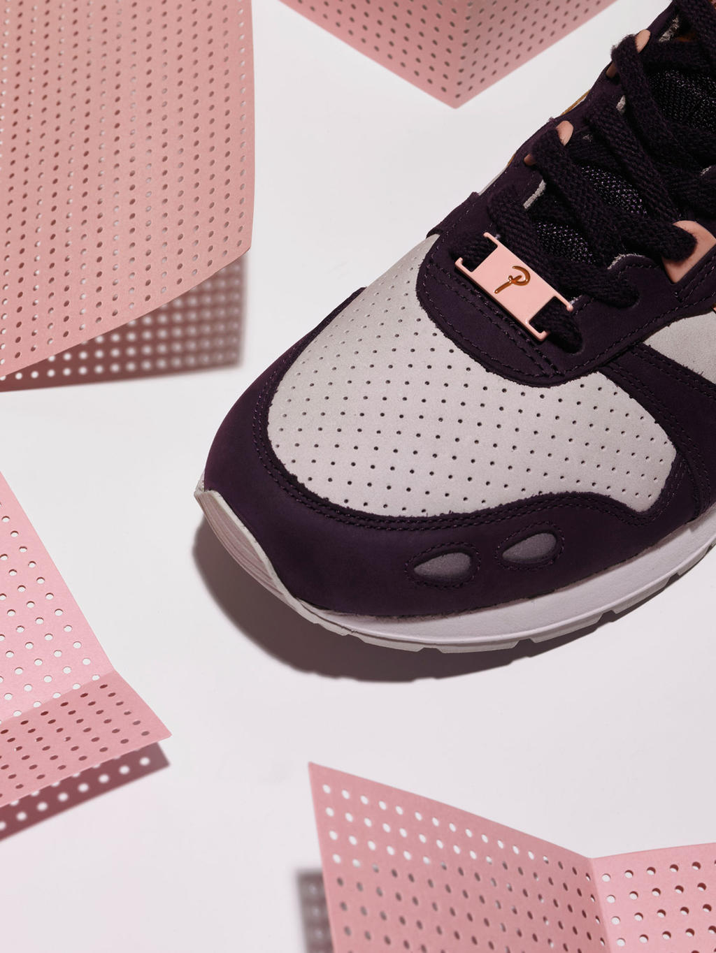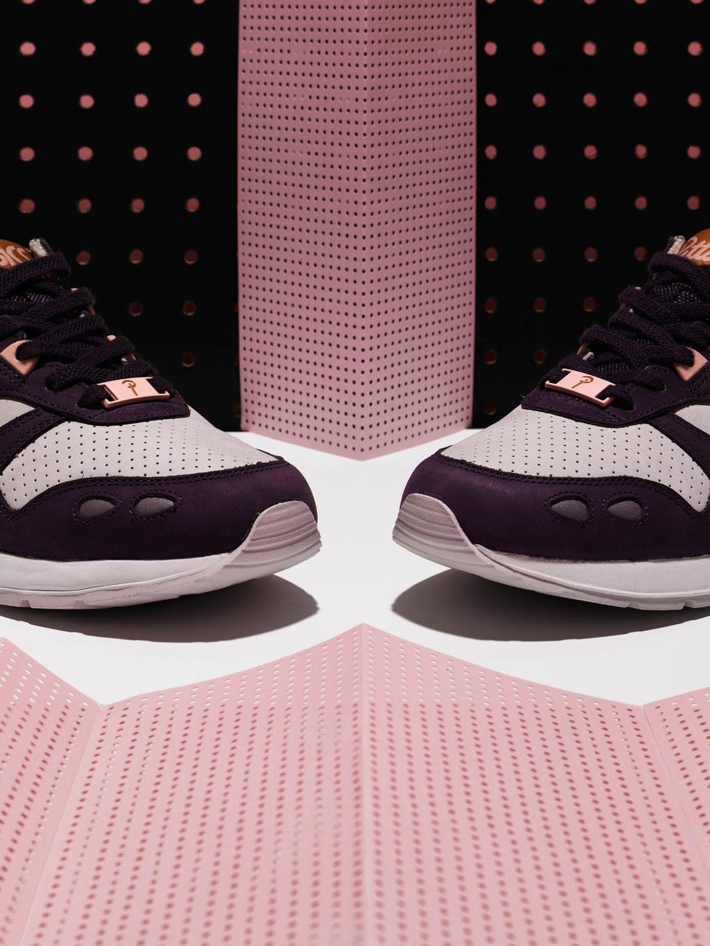 Patta's version comes with a mid grey base and dark purple nubuck overlays, accented with ginger honey striping and subtle pink hits on the details (including the striping underlay, lace stays and Patta-branded lace locks). The shoes feature a perforated toebox, soft leather lining, with subtle co-branding to be found on the woven tongue label, embroidered on the heel tab, printed on the insole, and on the aglets + two sets of pink and ginger honey laces.