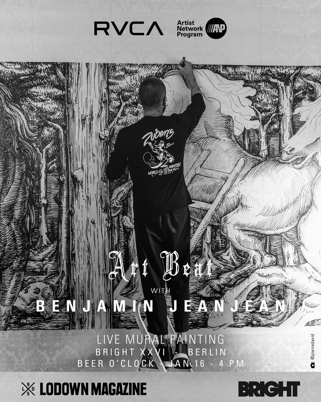 BRIGHT XXVI will be filled with loads of extracurricular activities once again. Celebrated artist and RVCA advocate Benjamin Jeanjean will do a massive indoor mural during the tradeshow on Jan. 16 - 17. 2018.