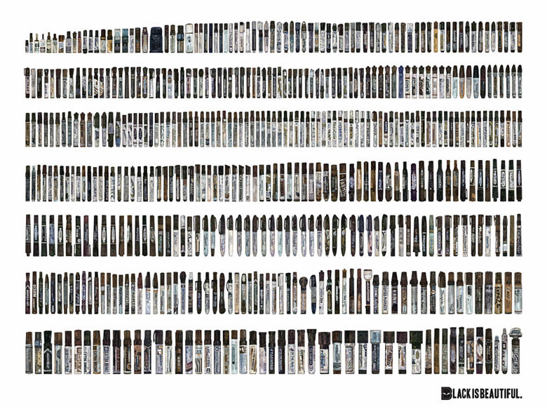 From vintage glass barrel Magic Markers and elusive El Markos, to bootleg Super Sharpies and metal-jacket Sakuras, a comprehensive historical and international spectrum of black marker design is displayed through a combination of curated physical specimens and 1:1 scale archival illustration.