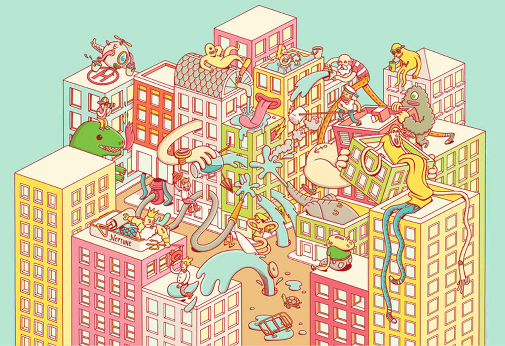 Brosmind is an illustration studio based in Barcelona that has been founded in 2006 by brothers Juan and Alejandro Mingarro. They describe their style as fresh and optimistic, always using fantastic elements and a lot of humor. Indeed, their little characters are colourful and sweet, and sometimes there is so much information in a single drawing that it comes close to the classic “Where’s Wally?”.