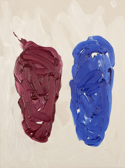 Technically, as a painter, Billingham’s practice focuses on pigment, texture, and surface; he uses acrylic, oil, or both, applying the paint to polyester, linen, tapestry, canvas, or wood panel, depending on his desired outcome. Beyond his broad understanding of the medium, his gestures and compositions demonstrate how painting possesses the ability to be completely subjective. Accordingly, Billingham looks to personal and shared experiences as a source for his topics and imagery. His series of approximately 30 small-scale paintings are abstracted seascapes, depicting two boats floating at sea, inspired by summer holidays by the ocean. The boats’ proximity to each other, as well as the negative space surrounding them, opens a psychological dialogue – symmetry can read as balance, but it can also create tension.