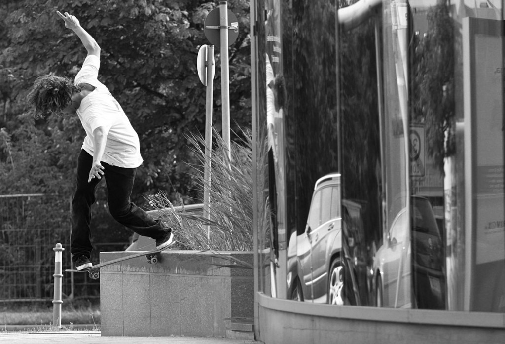 Generally, I would be happy, if somebody could stop the evolution towards the olympics. Today Skateboarders are presented as hard athletics. Higher, faster, further. It's not really about showing nice skating which motivates people to go skate anymore. I think it kinda demotivates and conveys that you have to start with at least 10 stairs or an handrail with 20 kinks.. In Milano I've seen people filming for five hours to get one trick. I think that creates egoists. People go to spots to present themselves and not to skate a good session.