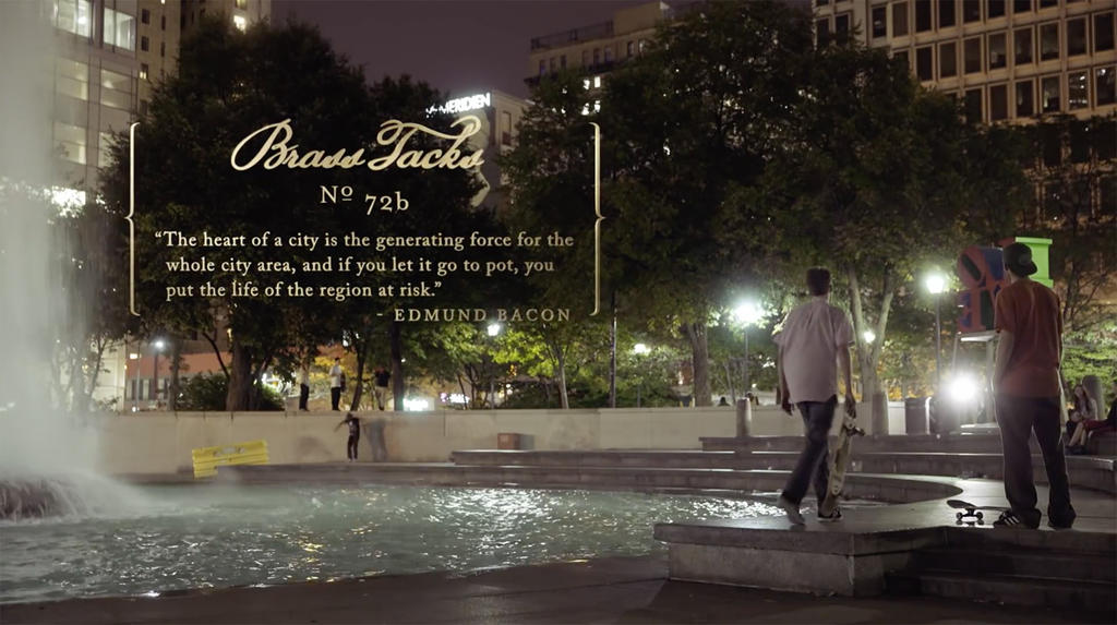 Mark is exploring several famous public plazas and exercising his civil liberties via skateboarding in each one. Further insights on these iconic skate spots are delivered via “The Brass Tacks” pop ups. School your history knowledge and enjoy the video accompanied by The Lower Dens.