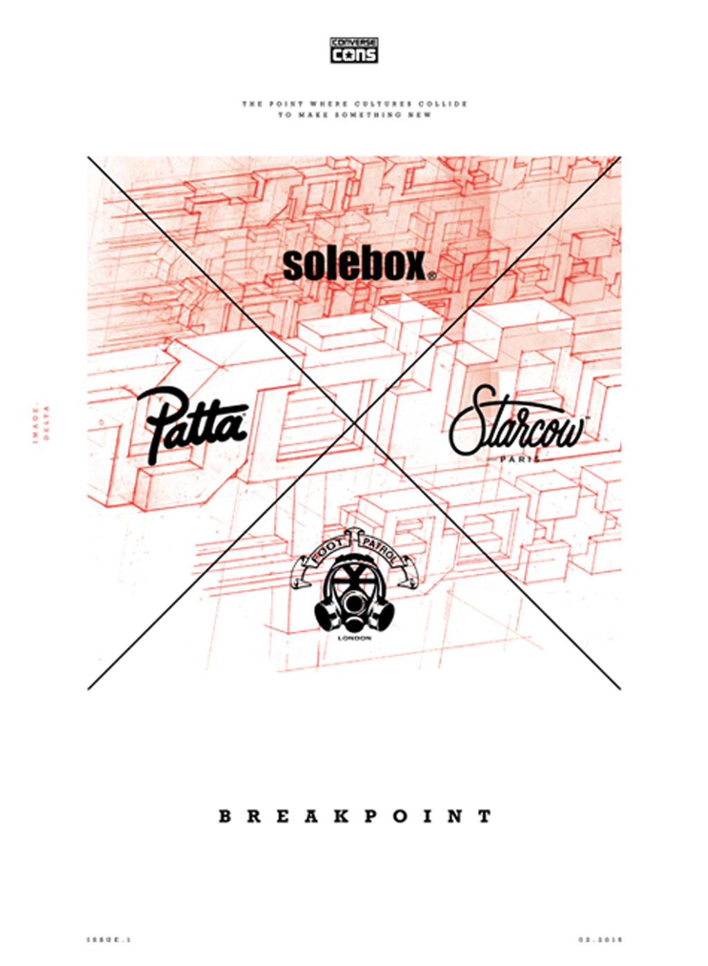 Today, Converse announces the launch of the new CONS Breakpoint Collection, an exclusive pack of sneakers created in partnership with four cutting-edge European retailers – Patta in Amsterdam, Solebox in Berlin, Footpatrol in London and Starcow in Paris.