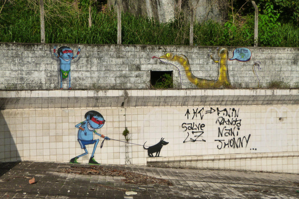 Sao Paulo born and raised artist Fabio Oliveira aka Cranio “skull” started covering the grey walls of his hometown in 1998. His work is marked by a great sense of humour and is inspired by little details that surround him in his daily life such as traffic jam, police abuse, worldcup, security, poverty and graffiti lettering – Cartoons and Salvador Dali are some of his greatest references.