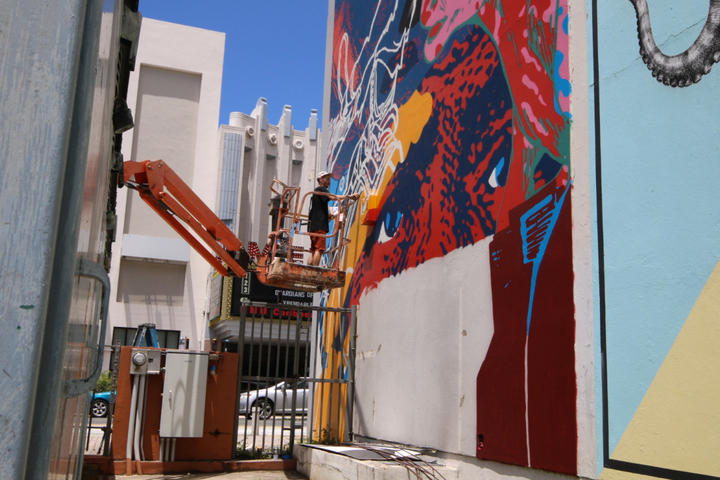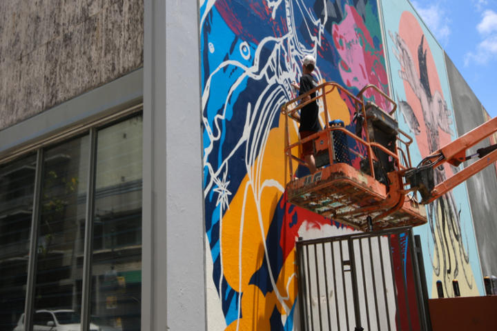 Curated by JustKids and produced by c787studios, the mural can be seen at the side of the Contemporary Art Museum of Puerto Rico and features illustrations of cowboys and Indians.