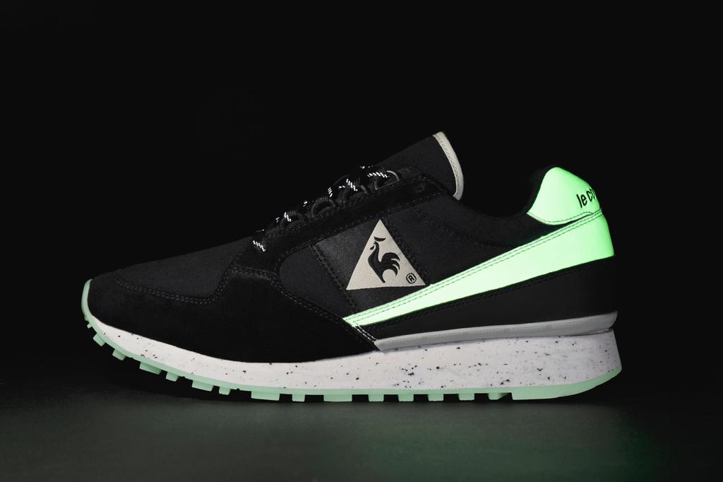 Le Coq Sportif comes through with a reworked version of one of their most iconic silhouettes - the “Eclat Glow in the Dark” shoes. This innovation is perfect for all running fans or "night clubbers" as the phosphorescent details and the soles charge up in the light and ensures the maximum visibility at night.