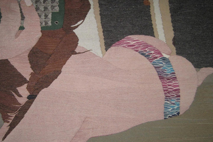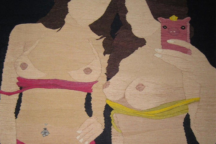 Brooklyn based artist Erin M.Riley uses traditional tapestry techniques to explore women’s sexuality in its more intimate facets. Her weavings are similar to a pre-teen’s Instragram posts as they explore an uncomfortable aspect of modern days: nude selfies, as well as sex and party scenes are all present in her work. According to the artist, she tries to understand the way people interact through her art. Part of the AOL and MSN generation, Riley grew up in this virtual world in which people share intimate moments all the time and where nudity seems to be a common and normal thing... so she decided to adopt this theme and go further with it. Her work is an honest observation on sexuality and the uncomfortable disconnection between the feminine and female sexuality.