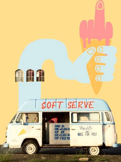 If you see an old vintage car in the street you can take a picture of it and send it to him with the hashtag #finnycar. If you're lucky, your picture then might end up on his instagram in front of a completely new background. He uses those picture as a starting point in order to create a colourful and playful universe made of strawberries, bananas, popsicles, and cute pastel colours.