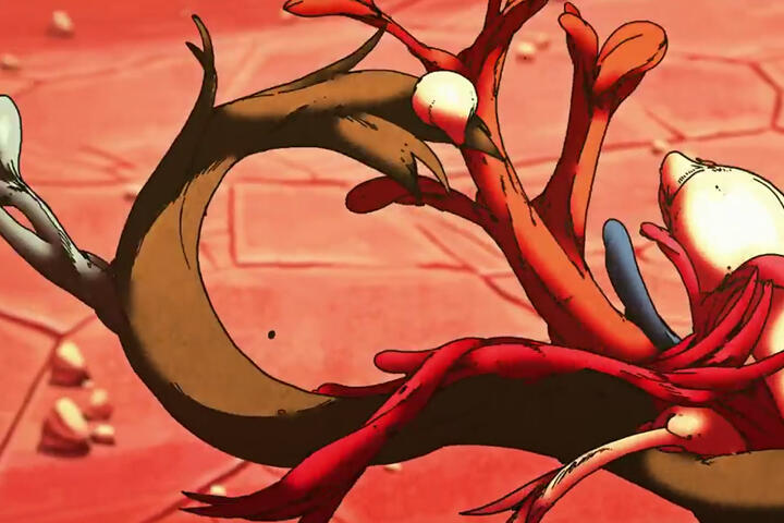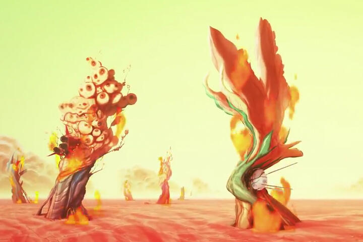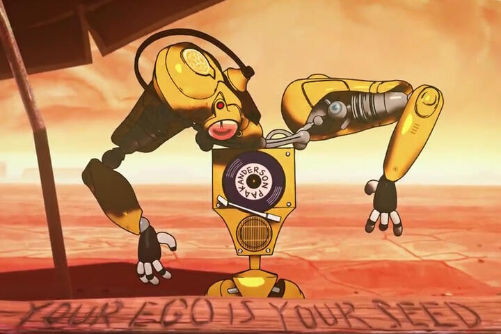 Accompanying animated vid was directed by Shinichiro Watanabe and introduces Fly Lo as a lonley space traveler who mutates into something very weird after he met a musical robot on an abandoned planet. Hmmm.