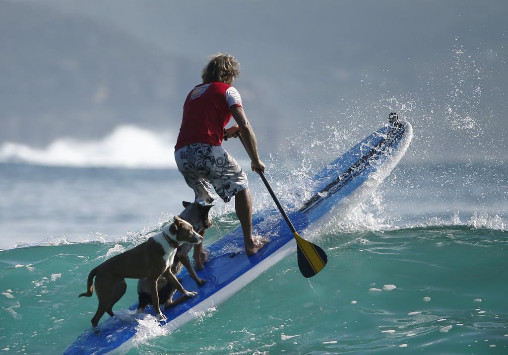 It may sound like the intro to a bad joke but just when you think you've seen it all, one Aussie and his pair of pups have taken the novelty SUP game to a whole new level.