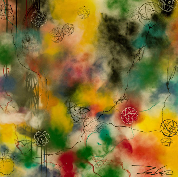 “The 5 Elements is not a retrospective show. On the contrary, Futura worked specifically on a large museum-style conceptual exhibition, tackling the ambitious theme of the Creation of the Universe, confronting himself to the cosmos, the planets, the infinitely small, the Big Bang and the fundamental elements, producing a corpus of works that becomes a personal path to the exploration of the universe and of course of Futura’s internal galaxy. The works are displayed starting by the Big Bang, going through the birth of the solar system and to our perception of the 4 elements.“