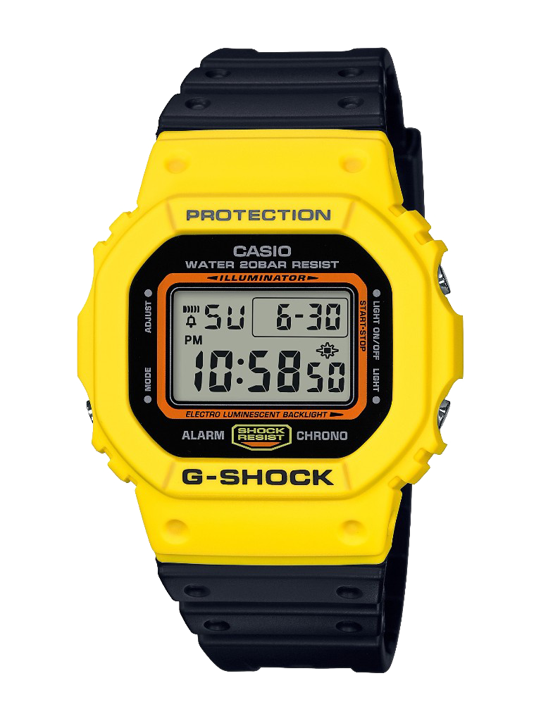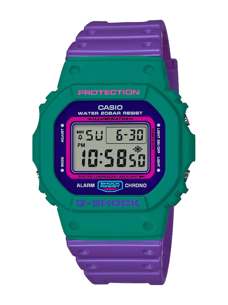 As we are at the helm of the G-Shock 35th Anniversary in 2018, Casio celebrates the 1980s with the release of four new G-Shock DW-5600 watches. The DW-5600TB Throwback Series is based on the classic square case which resembles the original G-Shock DW-5000. Each watch features a bold two-tone design with color combinations inspired by ’80s street fashion. The models include the black and yellow DW-5600TB-1, red and whiteDW-5600TB-4A, pink and light blue DW-5600TB-4B, and purple and green DW-5600TB-6.