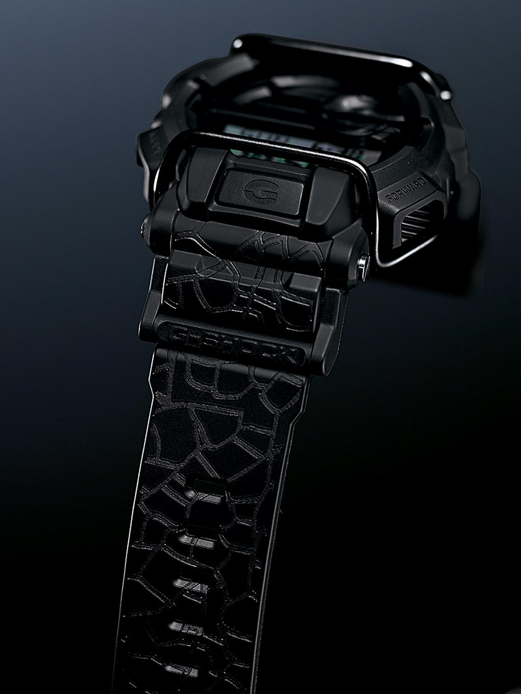 The watch is all blacked-out with an etched lug band, that is inspired by “cracked concrete”, the HUF logo is etched on the back and the display can be highlighted by a HUF green LCD backlight as the finnishing touch. “What?”