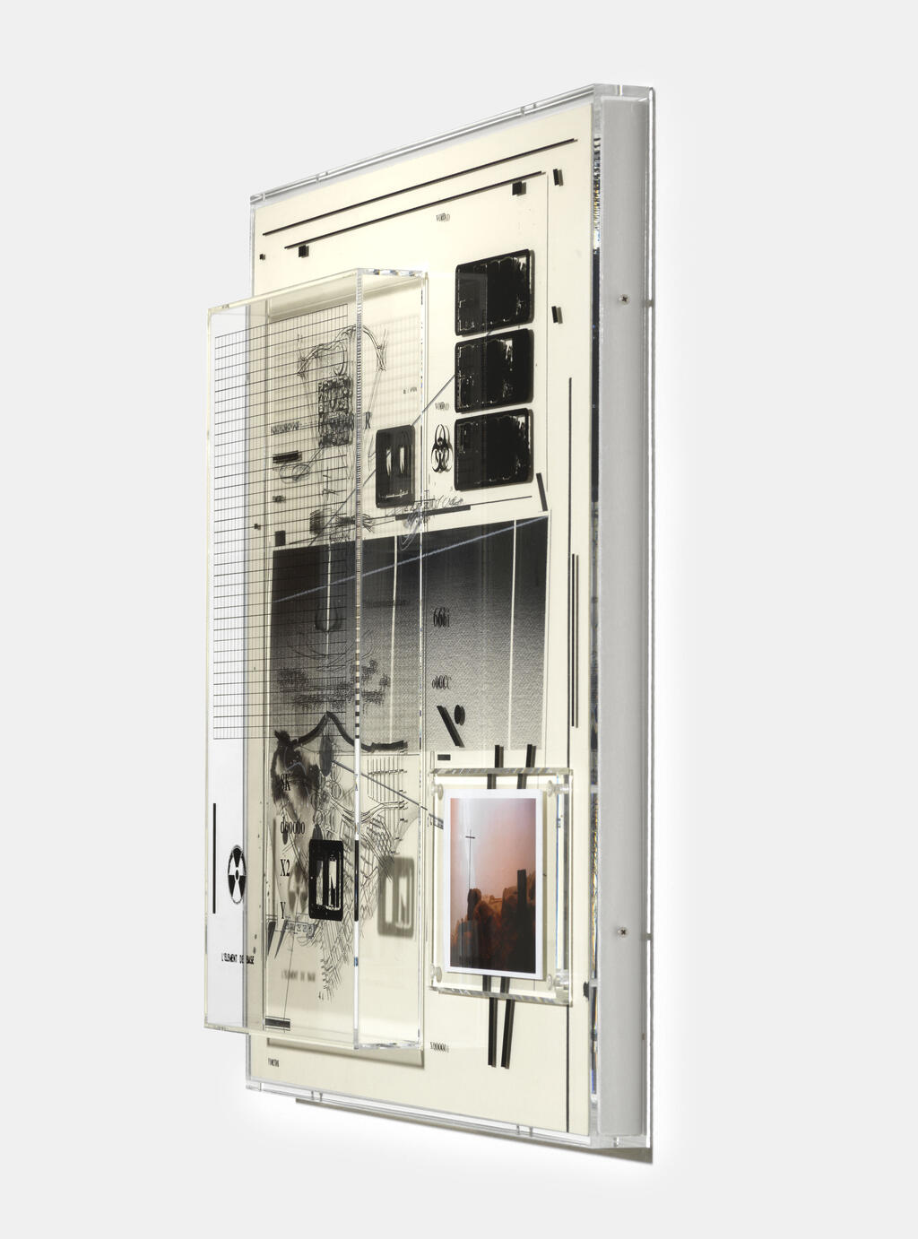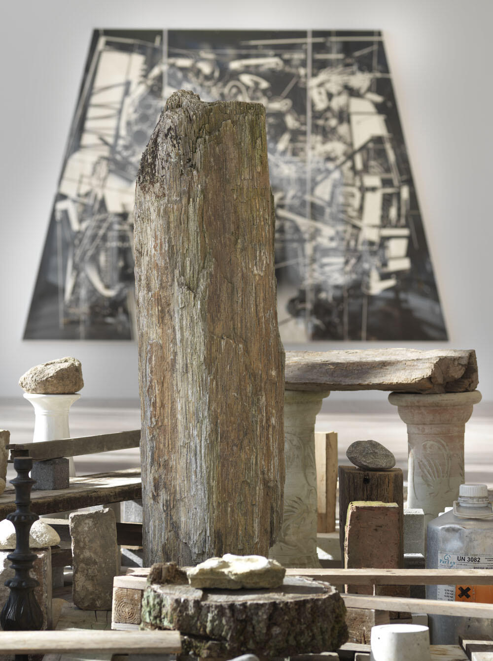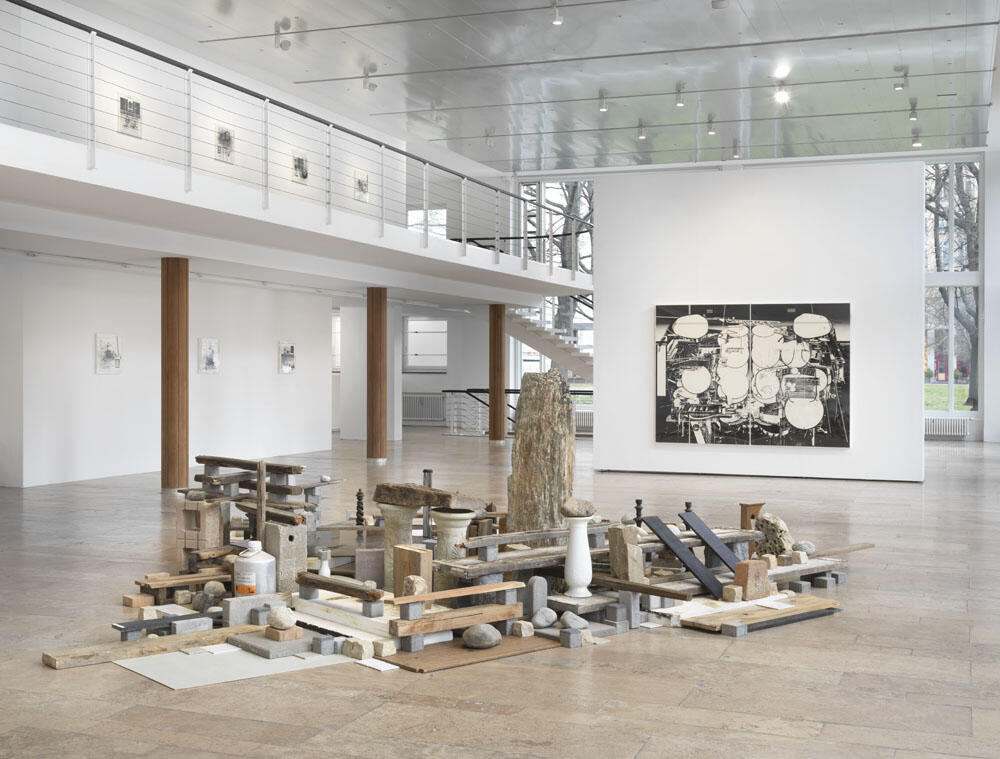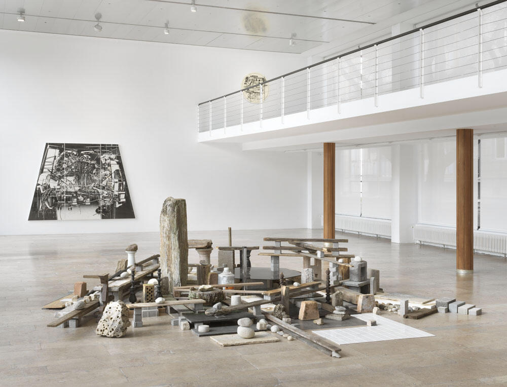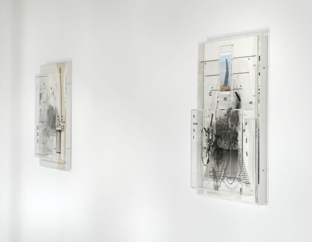 Capitain Petzel is pleased to announce 199X Storm Garden, an exhibition by Tokyo based artist Hiroki Tsukuda. It features an installation composed of objects found on-site, paintings, and a new series of multilayered pieces in which works on paper are imbricated with acrylic frames silkscreened with symbolic geometric patterns.