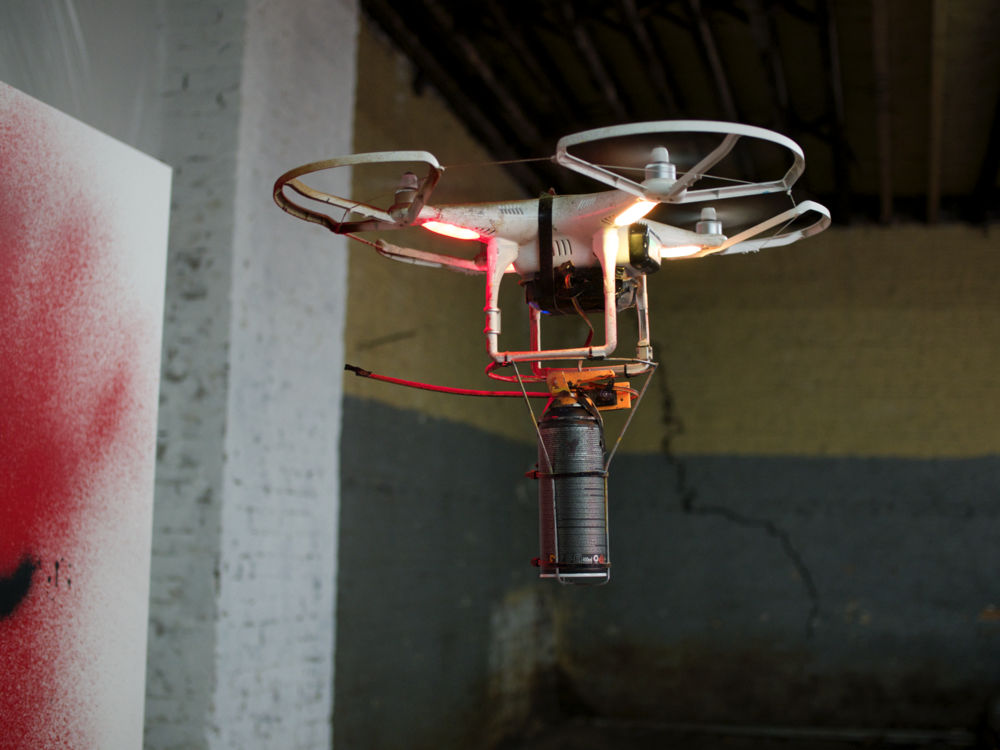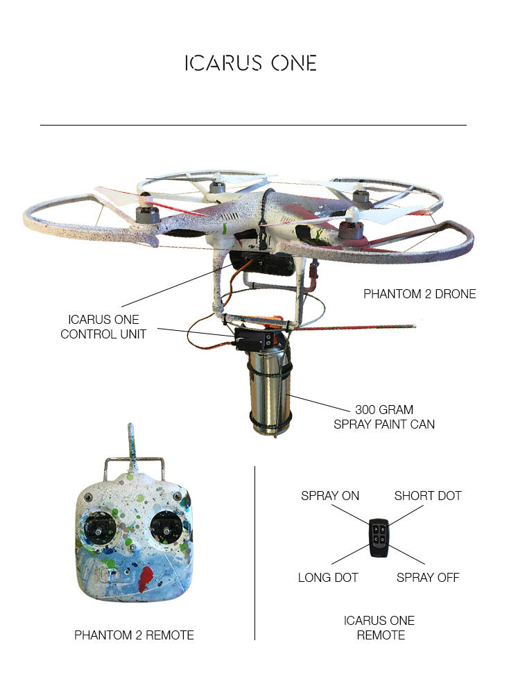 Icarus One project is the perfect example; an hardware and software that allows for the artists to use spray enamel with the reach and scale of a drone. Instead of putting a weapon on the drone, put a spray can and draw !