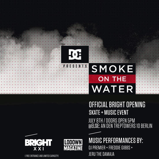 DC SHOES proudly presents - in collaboration with BRIGHT and LODOWN MAGAZINE: SMOKE ON THE WATER. It's the official Bright opening on July 8th, where the good times begin at 5pm already!
