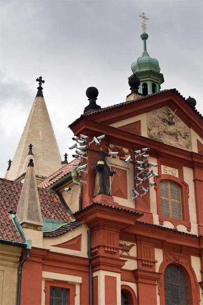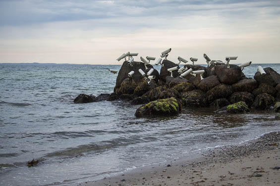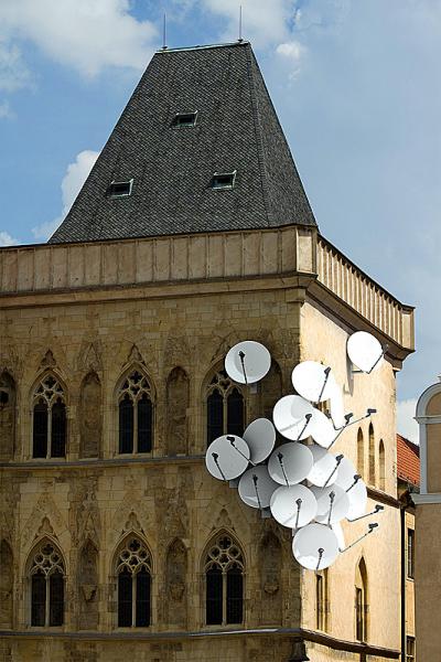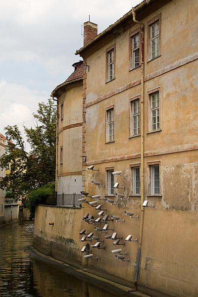 So obviously, when an artist like Jakub Geltner is playing around with surveillance cameras, satellite dishes and security equipment in unusual areas, we love it immediately! The installations of the Czech artist are actually quite subtle and draw attention to the presence of being watched and filmed all the time; a testimony to the fact that we are losing our freedom gradually. Living and working in Prague, Geltner created his first installation directly in the center of the city, perfectly assimilating into the surrounding architecture and design of the contemporary urban landscape.