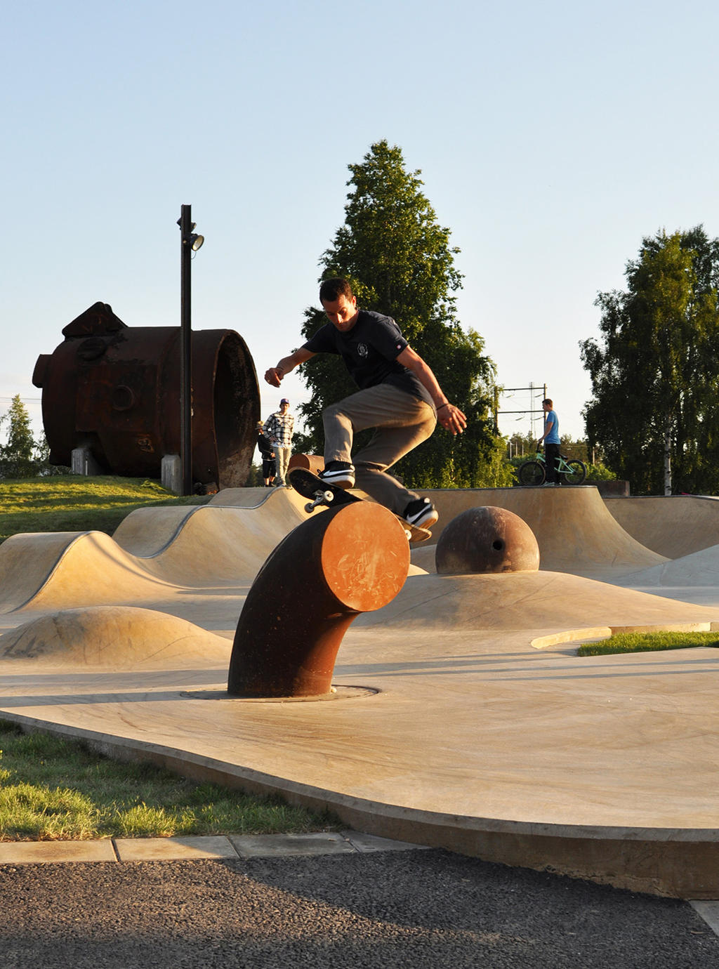City of Luleå has a unique northern character and a history of manufacturing steel. The skatepark has a view to Luleå's biggest steel factory. The park turned into a link between history of the neighbourhood and present day situation. Recycled steel factory parts and various steel elements are used to unify the look of the park. The biggest object is a ladle what they used to pour out the melted steel and became a landmark when it was positioned at the highest point.