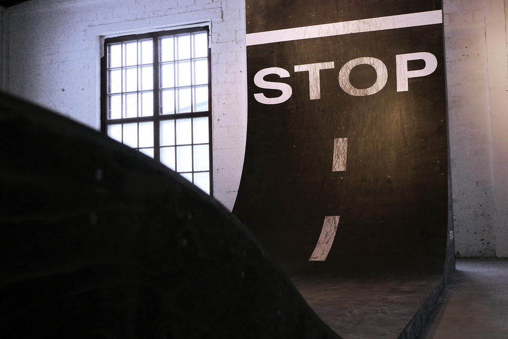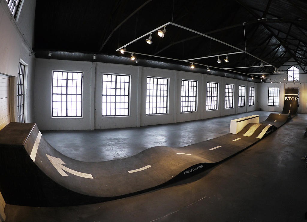 Striitti was a skateable wooden sculpture for an art exhibition in Fiskars, Finland. In Fiskars they have just one asphalt road in town and you can't really skate that cause it's the main road for cars. I suggested an alternative version of the asphalt road.. The sculpture has been exhibited for a couple winters in a row, turning a part of the art museum into a local skatepark.