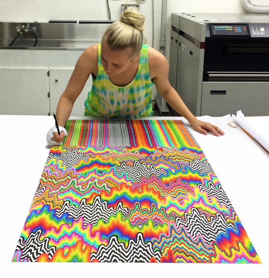 Jen Stark has made a name for herself with use of her trippy-drippy, two and three-dimensional works that play with color, optics, and infinity. Best known for her mesmerizing paper sculptures and psychedelic public murals, the artist has previously produced two prints; this marks her first release since 2011.