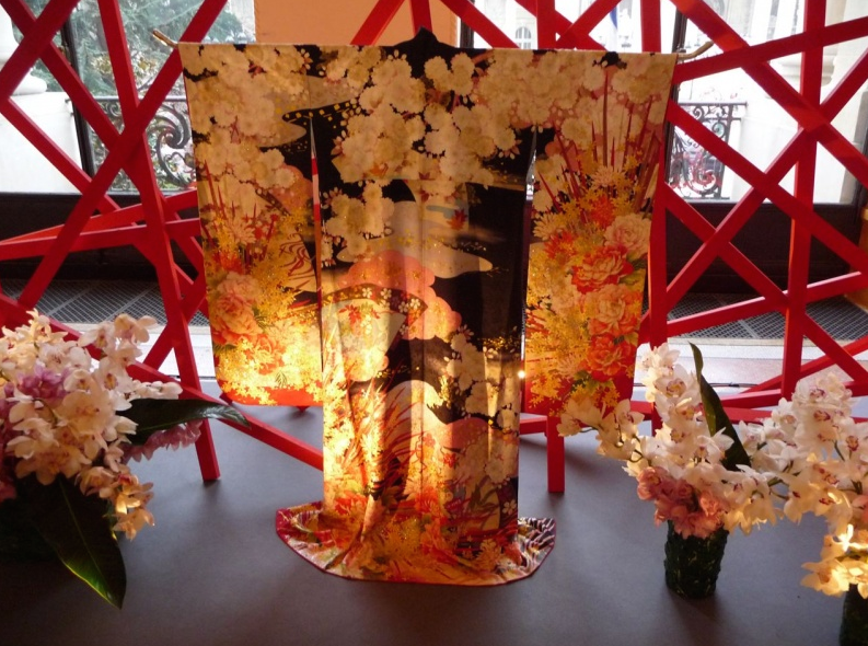 The exhibition has collected a large variety of Kimonos; they differ by colour, material, form, period and region of origin. The Museum also called for artists, mother and daughter Fukumi and Yoko Shimura, to create specific kimonos. Fukumi started her carrier when she was 30 years old. She began weaving with pongee yarn dyed with plant dye. Having developed the same interest as her mother, Yoko followed her example. In 1989, she established her own workshop, the Tsuki Atelier. The work of the two artists has been highly praised in Japan and abroad.