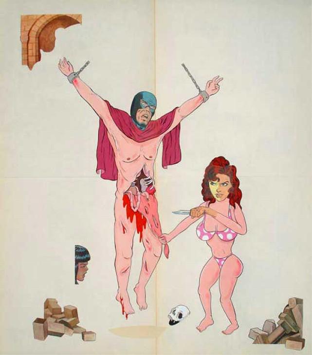 Mark Mulroney belongs to these rare group of artists that simply don’t give a damn - neither about other opinions than their own nor the art/gallery circuit. Mark Mulroney’s visual and sculptural works are funny, original and very well-thought out. His drawings usually depict the body in all its gross excess: engorged genitalia, numerous oozing bodily fluids, and characters in between ecstatic and sadistic states. His work though is not only explicitly sexual and trashy, it can be colourful and really decorative as well - such as the murals he made in public spaces.