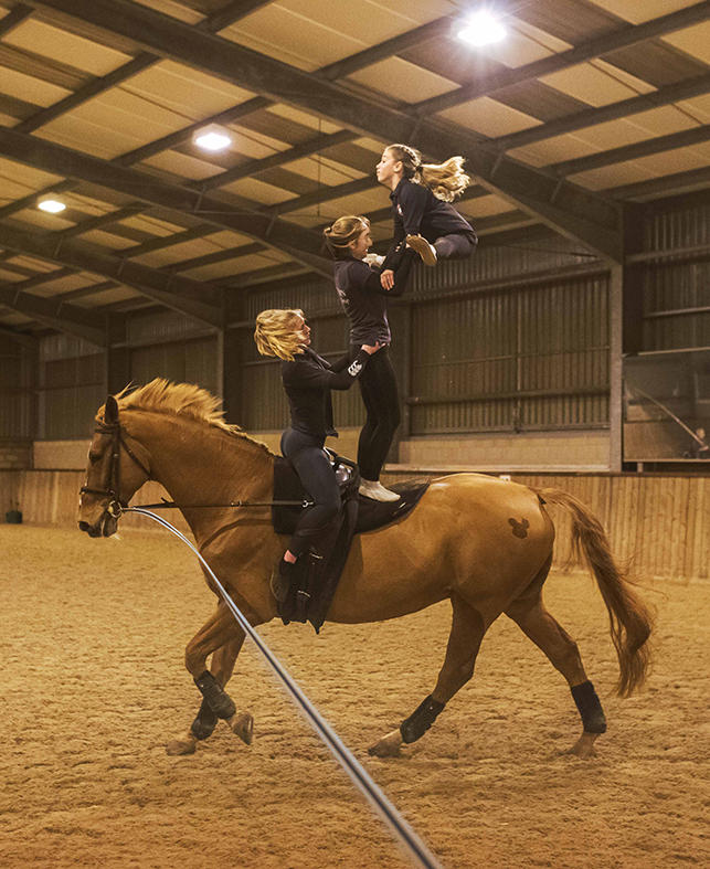 My role is a prop: I’m the person holding people up. I’m quite glad that I’m not a flyer – small people who are flying up in the air and looking upside down – because I could never do that. What I do is prop them and try to keep them safe on the horse.