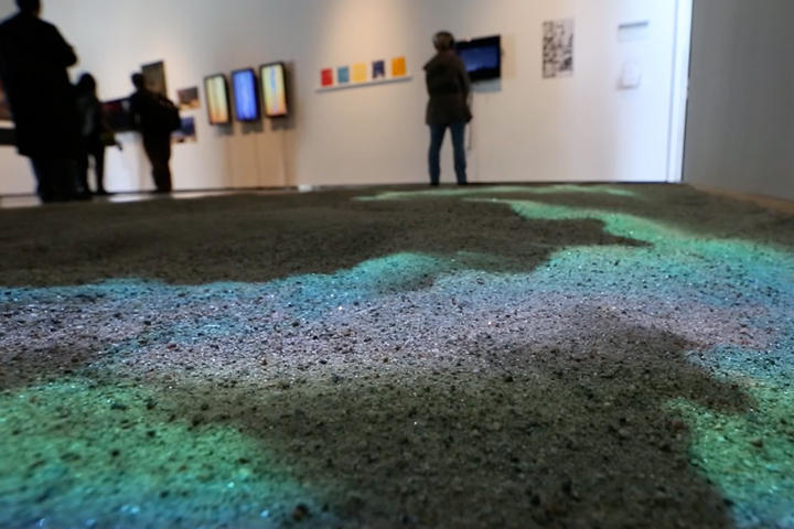 “Strandlines“ is a dynamically-generated art installation in which digital waves rise and fall across 400 pounds of sand. The installation's water mark corresponds to local tides, and no two waves are ever the same.