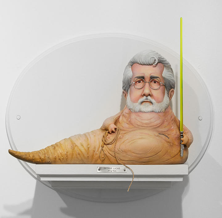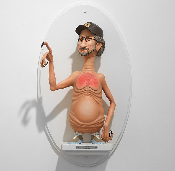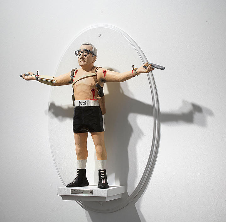 Leavitt has earned the nickname ‘Remike’ because of his love of remaking people into satirical objects. A huge fan of art, and a huge fan of film, the “King Cuts“ collection sees 18 inch tall totem sculptures of famous directors merging in form with icons from their films. Levitt is fascinated by the process of physical drain directors go through when they create movies, and how they become one with their films.