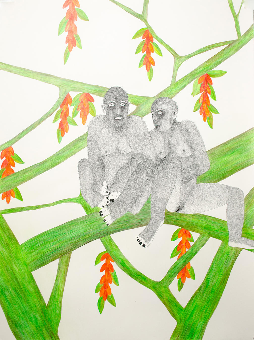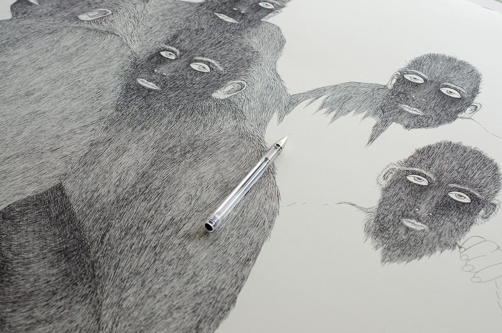 Generally I know what I want to do but then my works change and grow. My pieces are based on figurative drawing that portrays an evolving narrative environment. Mankind and animals meet in the twilight zone of the human element.